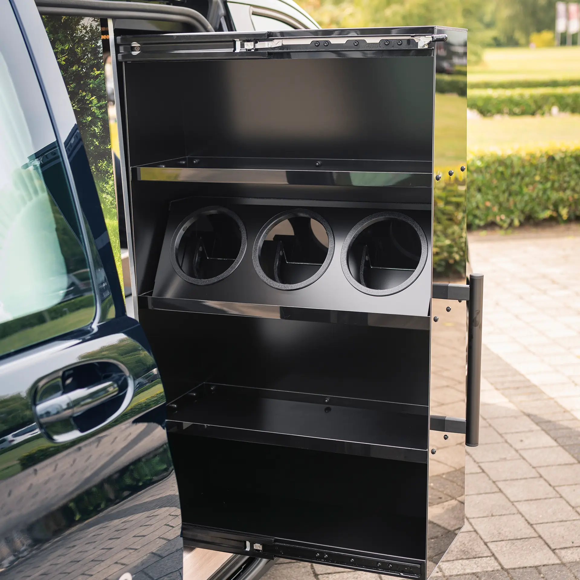 Skyddande sidopaneler på sidan i högglansigt svart coffin space